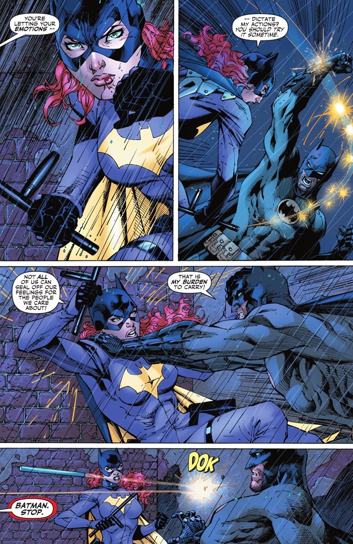 It’s true that Bruce has had some difficulty relating to his family this year, but to be fair, who hasn’t? The events of Jeph Loeb and Jim Lee’s H2SH have put Bruce at odds with much of the Bat-Family, even causing him to trade blows with Red Hood and Batgirl. This is all over Bruce saving the Joker’s life, and it’s all being orchestrated by Tommy Elliot.