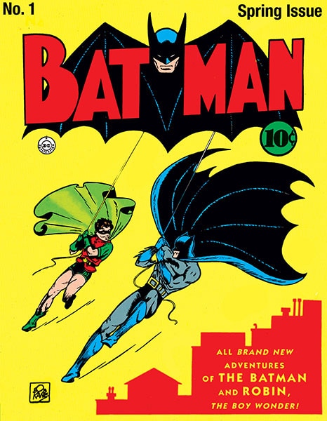 It took a little time for the idea of Batman to fully form, even after he first appeared in 1939’s DETECTIVE COMICS #27. His origin story was revealed several months later, in DETECTIVE COMICS #33. And the similarly orphaned Dick Grayson—Bruce Wayne’s ward and Batman’s first sidekick, the original Robin—was introduced in 1940’s DETECTIVE COMICS #38.