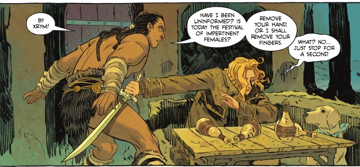 The Woman of Tomorrow comic begins as a space western in the tradition of True Grit (in which young Maddie Ross recruits grizzled veteran Deputy Marshal Rooster Cogburn on a mission of vengeance when her father is murdered). Eventually, however, it turns into a pirate story. As Krem befriends a band of merciless mercenaries known as the Brigands, who come complete with their own intergalactic buccaneer ship.