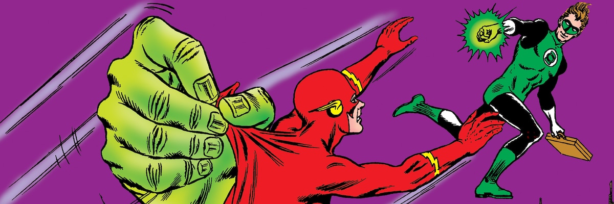 It’s holiday time! No color combination is so immediately identifiable with this season of the year than red and green. The two are complementary colors, opposite each other on the color wheel, and they look great together. Though that doesn’t quite explain why DC’s embodiment of those colors—the Flash and Green Lantern—are such good buddies. Why should a speedy scientist and a test pilot with a power ring get along so well? Whatever the reason, and whatever the season, there’s no separating the Scarlet Speedster and the Emerald Gladiator. Here are seven of their most bromantic adventures…
